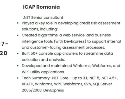 Pe parcursul carierei sale, Victor a proiectat și scalat aplicații complexe pentru companii din industrii variate – de la fintech și gambling, până la eCommerce și soluții interne de business. Are experiență solidă în modernizarea sistemelor legacy prin migrarea lor la arhitecturi pe microservicii, precum și în evaluarea și adoptarea celor mai noi tehnologii pentru a menține avantajul competitiv al clienților săi.